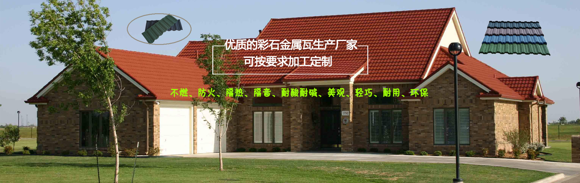 我們是一家彩石金屬瓦設(shè)備、設(shè)計、制造、銷售、安裝及服務(wù)于一體的公司 以過硬的產(chǎn)品質(zhì)量,優(yōu)惠的產(chǎn)品價格,令人滿意的銷售服務(wù),贏得您的支持與信賴。 彩石金屬瓦以防腐性能優(yōu)異的鍍鋁鋅鋼板為基板,以耐候性強(qiáng)的丙烯酸樹脂為黏合劑,以彩色天然沙礫為面層的新型屋面材料。